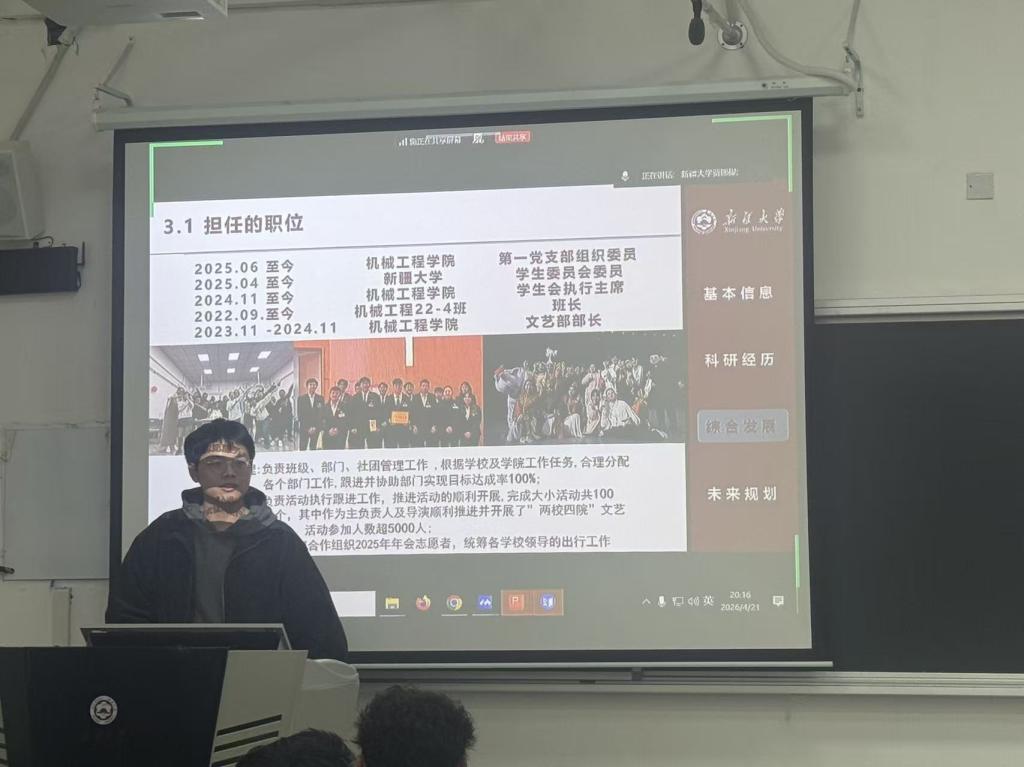 为扎实推进中国国际大学生创新大赛(2026)赛事筹备工作,助力参赛团队提升竞争力、顺利晋级校赛,激发学生创新创业热情,机械工程学院于2026年4月21日晚8:00,在机械学院楼A401精心举办大赛经验分享会。本次分享会特别邀请中国国际大学生创新大赛(2025)国家级铜奖获得者苗秉才、保研至国防科技大学2026届毕业生范胜元担任嘉宾,为兼顾友好校区学生参会需求,分享会采用线上线下同步模式,聚焦国创赛备赛核心,为学子搭建交流提升平台。